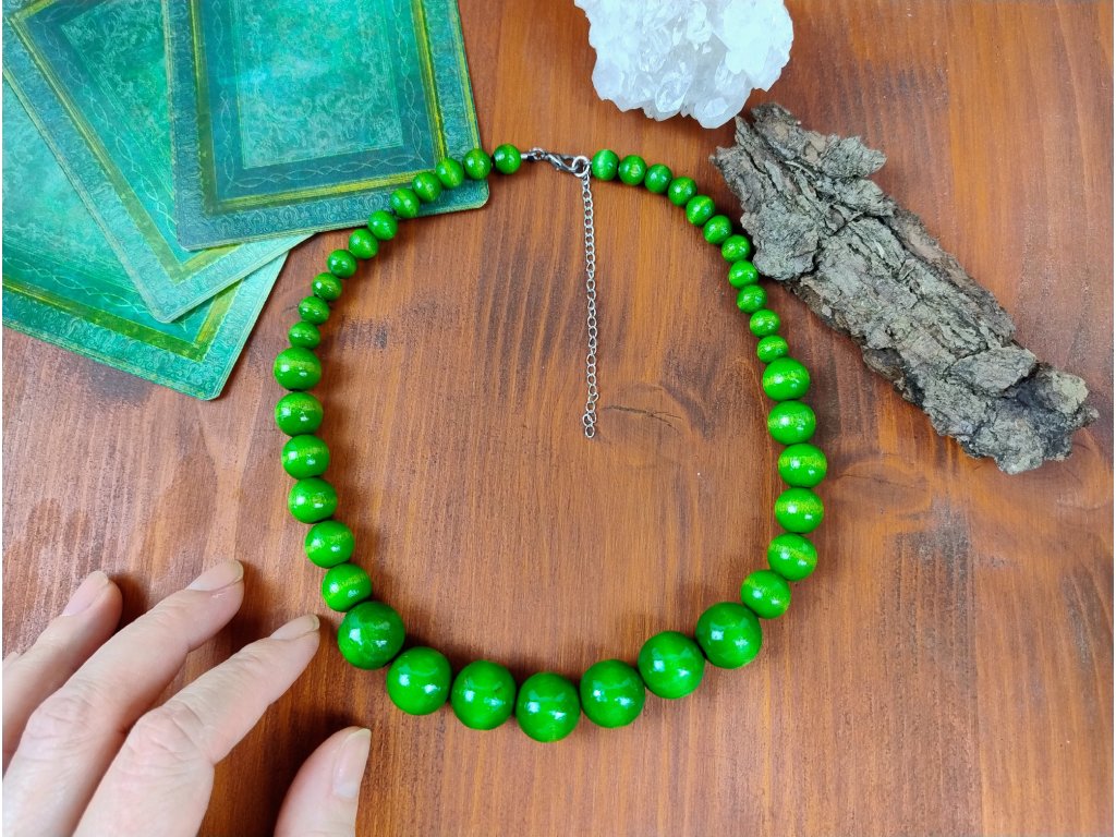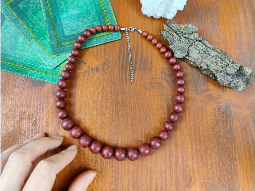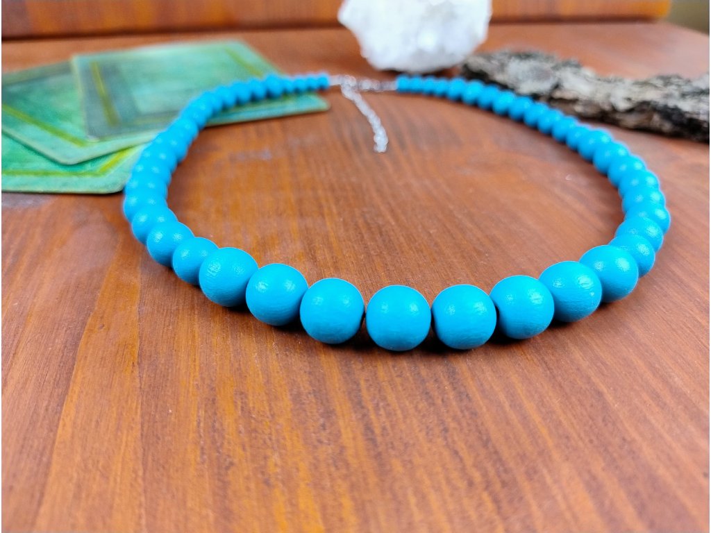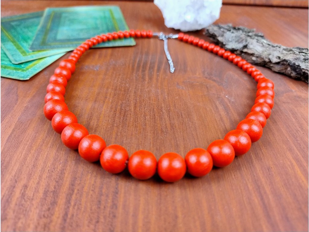 Barevné korále z dřevěných korálků je skvělým doplňkem ke každému modelu. Hodí se jak do společnosti tak i na běžné nošení k jednobarevnému tričku. Zapínání je z chirurgické oceli s prodlužujícím řetízkem.