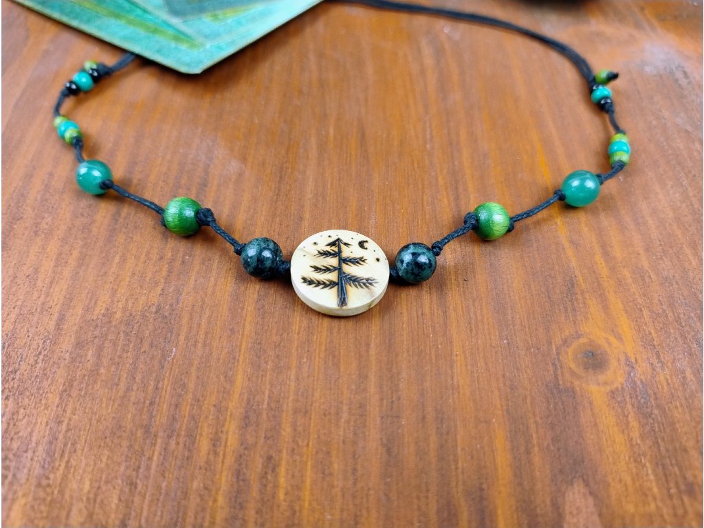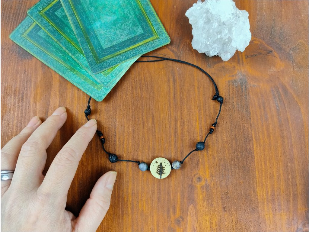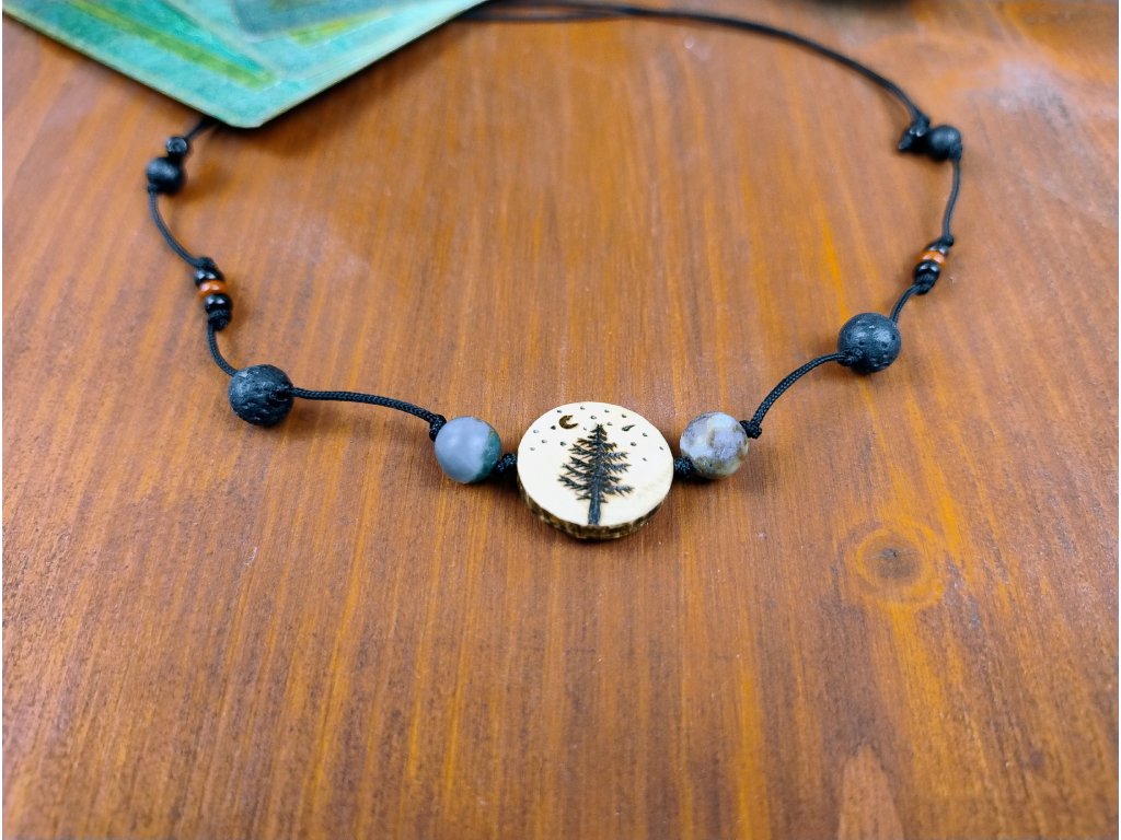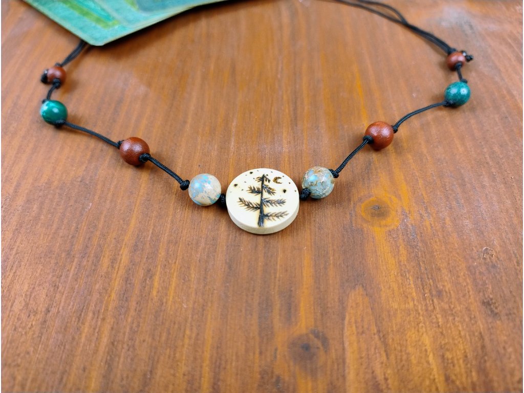 Ručně gravírovaný dřevěný přívěsek s motivem inspirovaným přírodou spolu s minerály tvoří originální náhrdelník, který podtrhne vaší jedinečnost. Společně dáte světu najevo, že vám na přírodě záleží a že máte divokou duši....A to není málo!