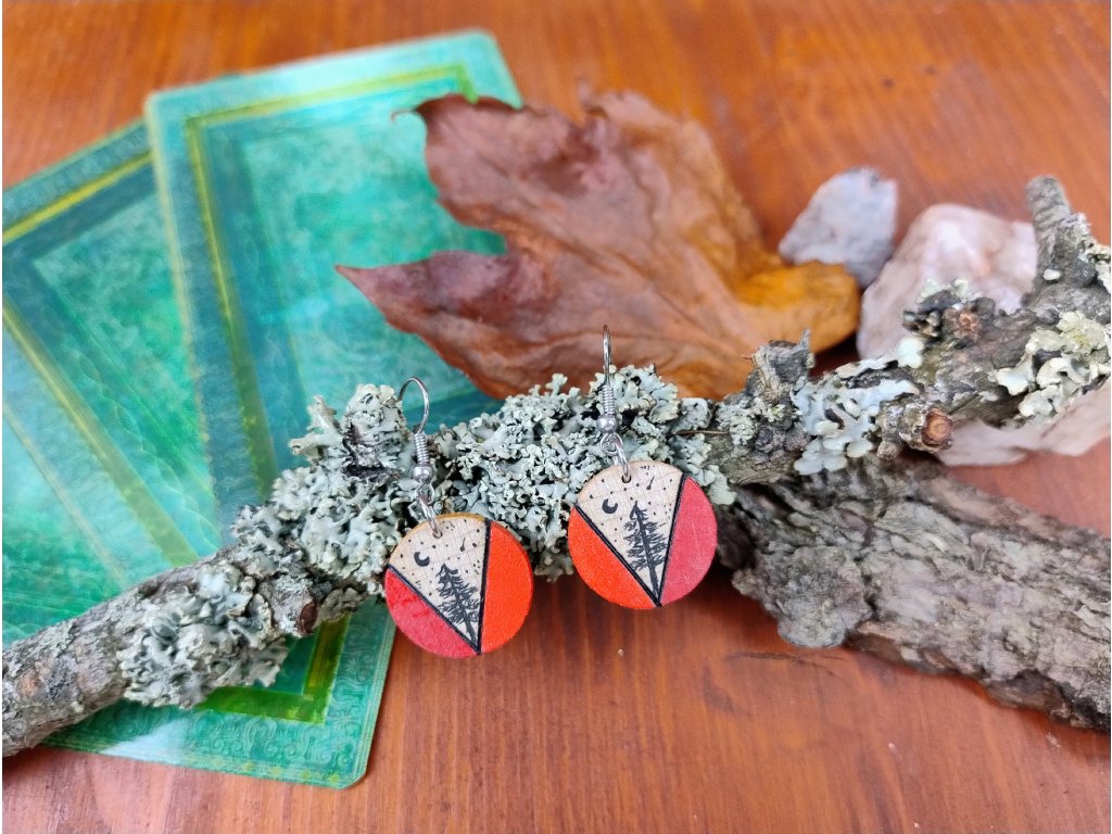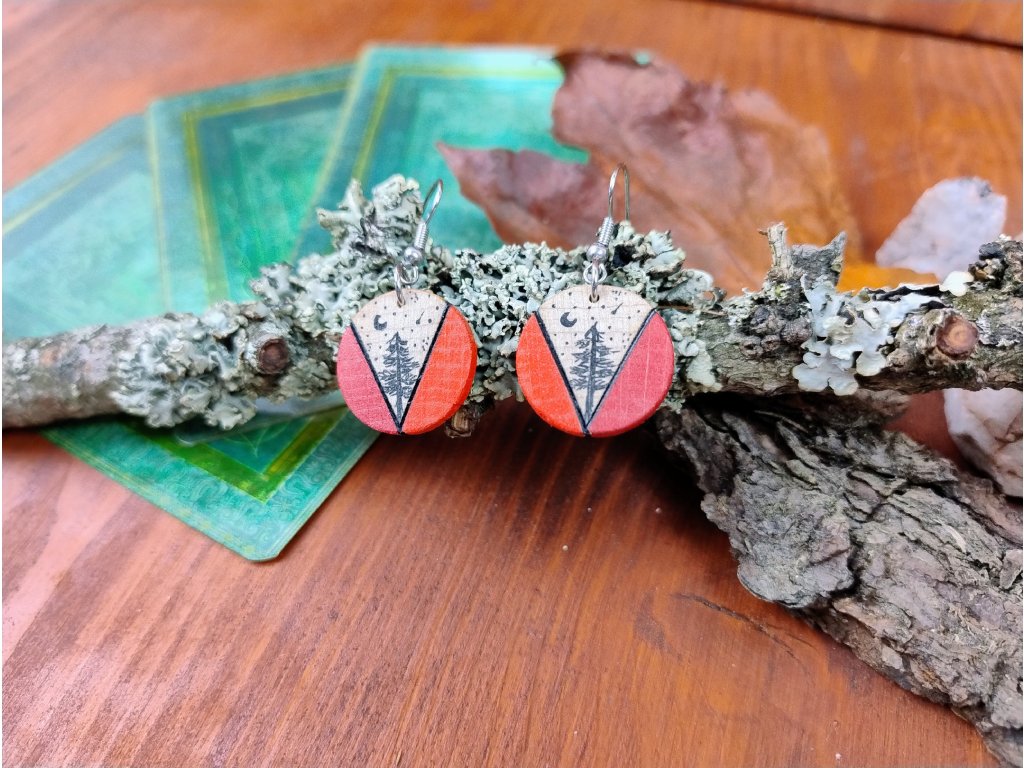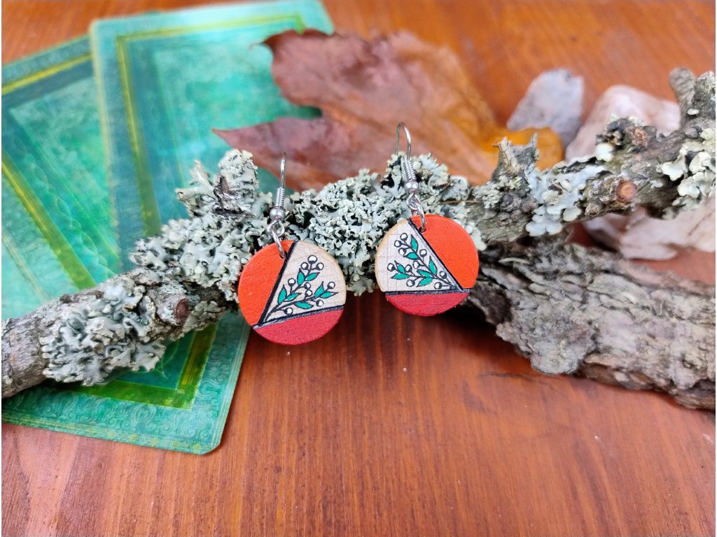 Ručně vyráběné náušnice ,,pecky“ z bukového dřeva spojují přírodní materiály s jemnými detaily ruční malby a gravírování. Jsou lehké, pohodlné na nošení a zároveň originální – perfektní doplněk pro každý den.