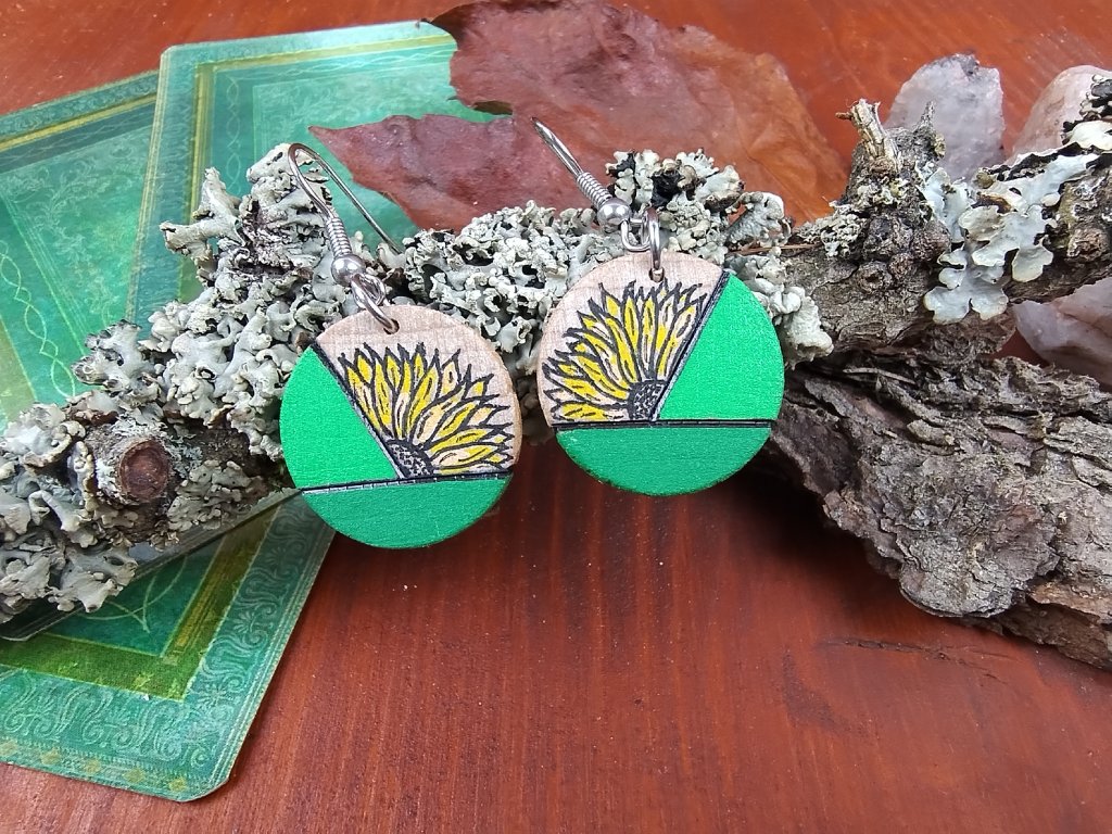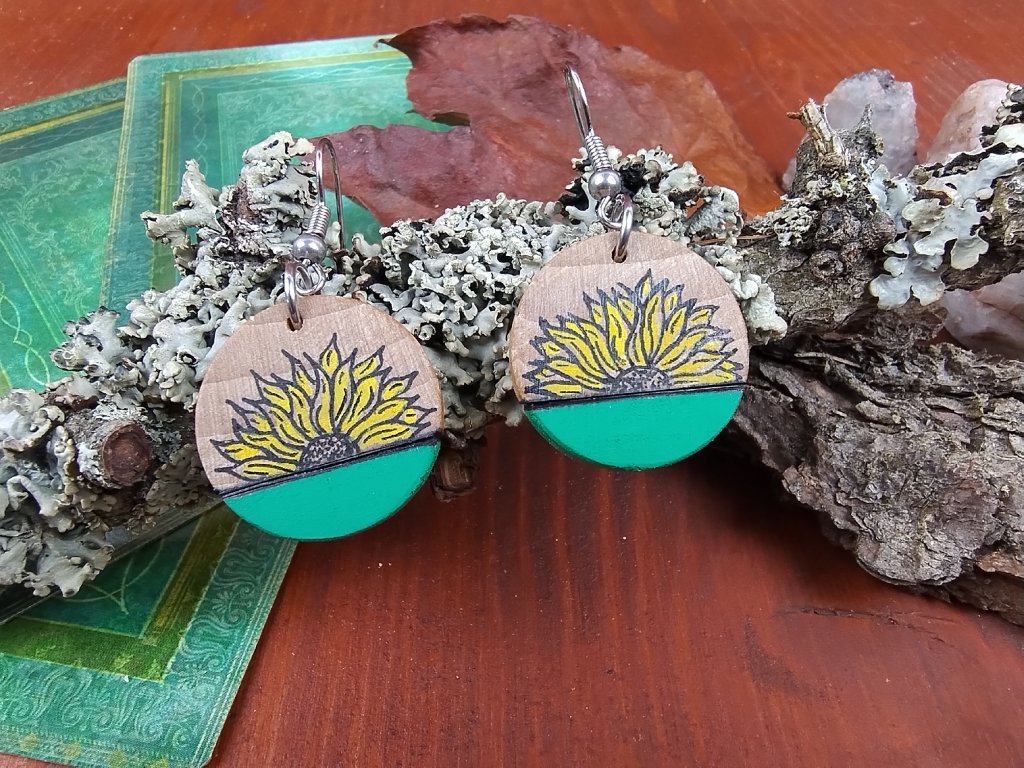 Ručně vyráběné náušnice ,,pecky“ z bukového dřeva spojují přírodní materiály s jemnými detaily ruční malby a gravírování. Jsou lehké, pohodlné na nošení a zároveň originální – perfektní doplněk pro každý den.