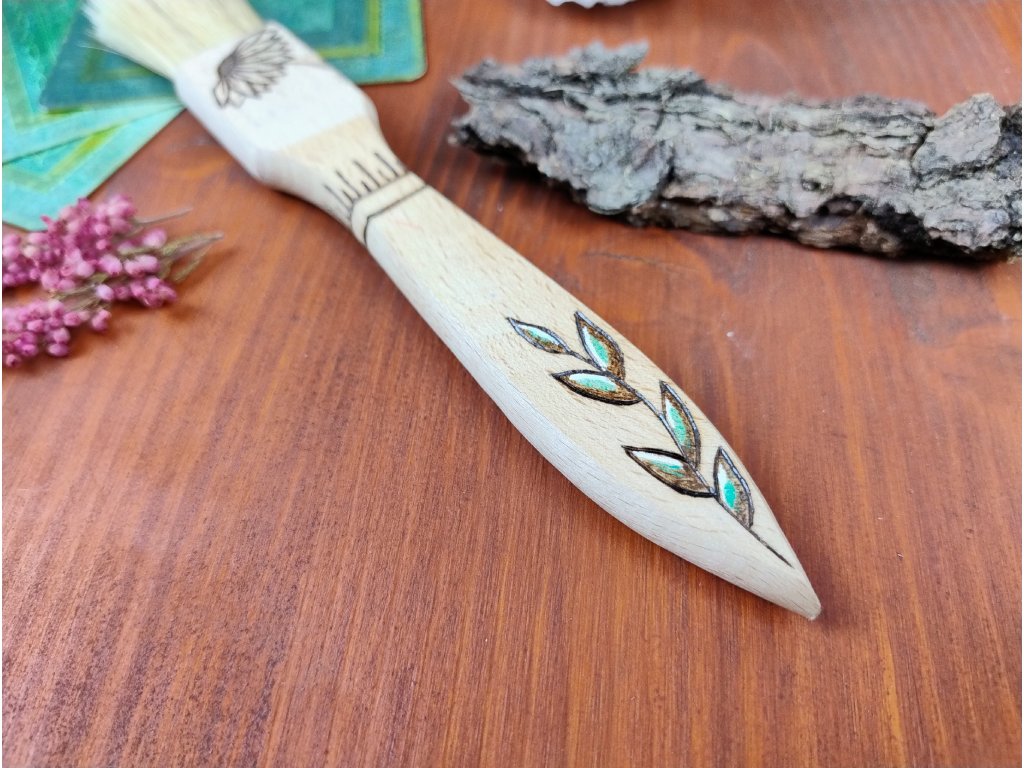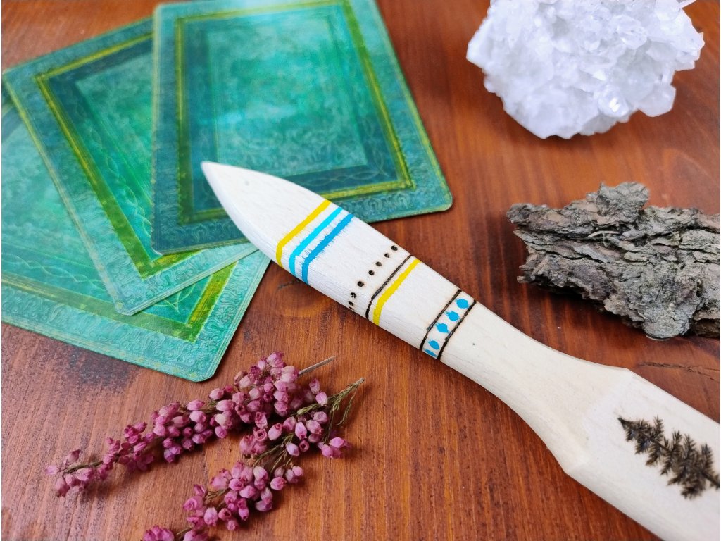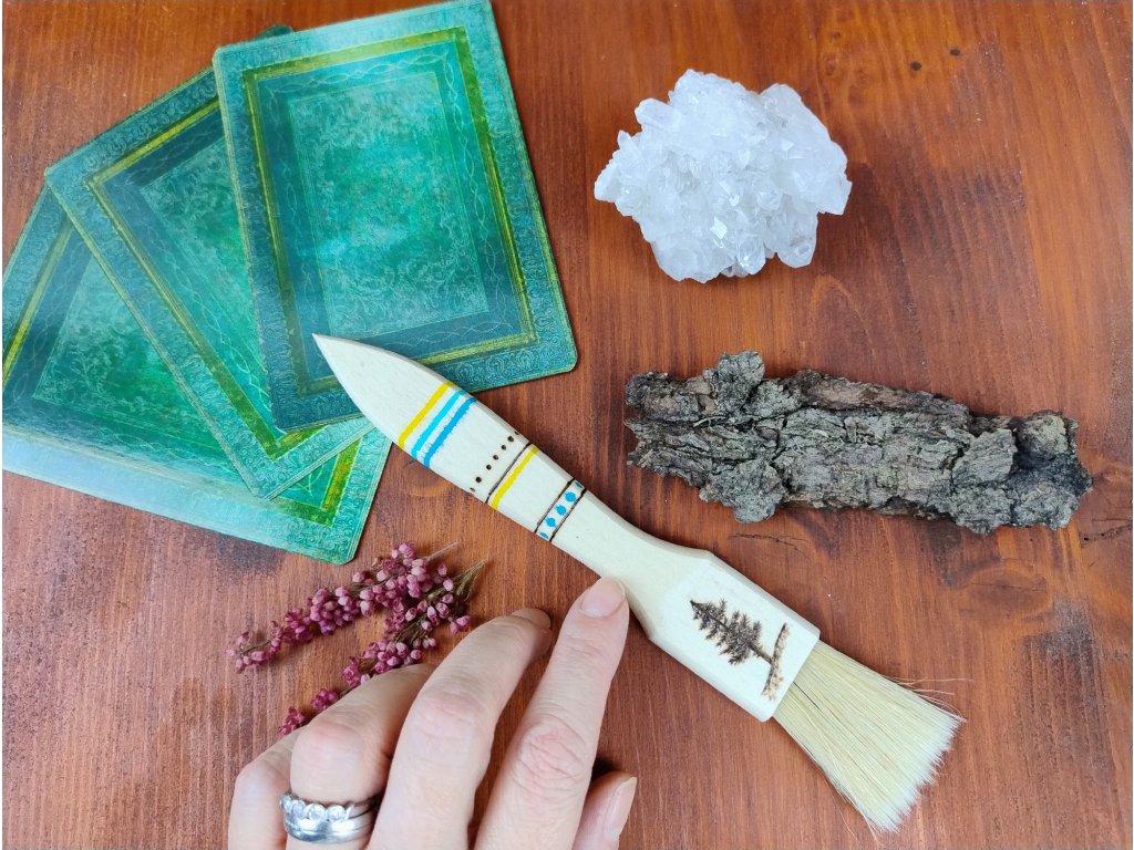 Na rukojeti jsou požity akrylové barvy. Díky svému tvaru krásně pasuje do ruky.